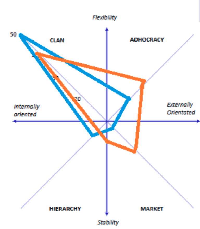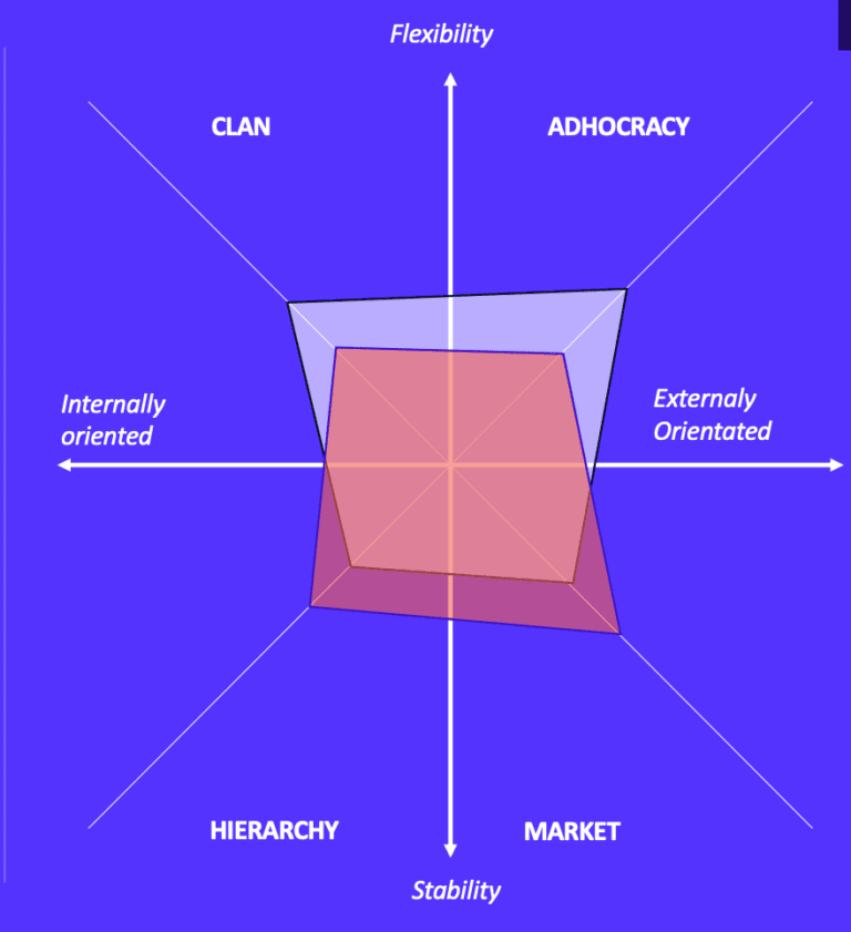 Our dedication to nurturing a strong organizational culture has always been key to our success at WeAre. Recently, Hälsa performed a thorough cultural analysis of our organization using the OCAI method (Organizational Culture Assessment Instrument by Kim Cameron and Robert Quinn). The OCAI is a tool designed to help organizations understand and measure their current and desired culture. This analysis, paired with intelligent leadership surveys, audit interviews, and observations, has provided valuable insights into what makes WeAre a distinctive and attractive employer. The OCAI categorizes organizational cultures into four main types:
