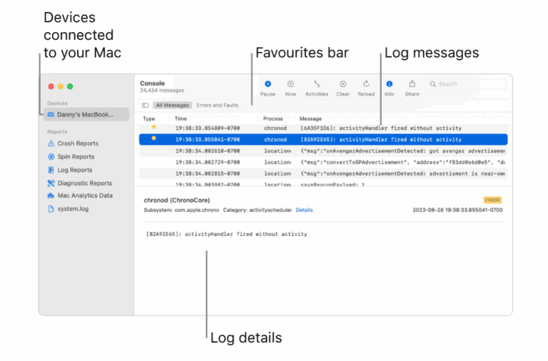 1. Open your Console app on your Mac, and select Log Reports in the sidebar.