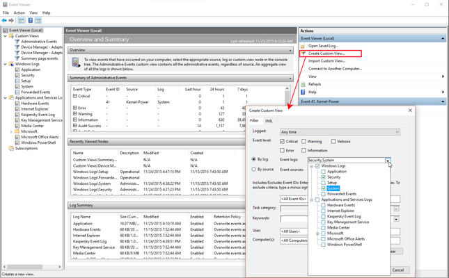 2. System logs: used to diagnose problems with your operating system or hardware.