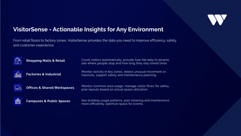 Retailers can improve conversion rates and staffing efficiency. Offices can optimize space utilization and reduce operational waste. Public sector organizations can enhance safety and plan resources based on real data. All through one structured, managed service.